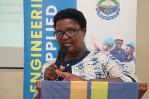Delivering the keynote address, Eng. Alison Abenabo, Station Manager at the Ministry of Works and Transport, Kabale, challenged engineering students to embrace reverse engineering and industrial training as essential tools for innovation. She emphasized that students must move beyond theory and actively work to improve existing technologies.